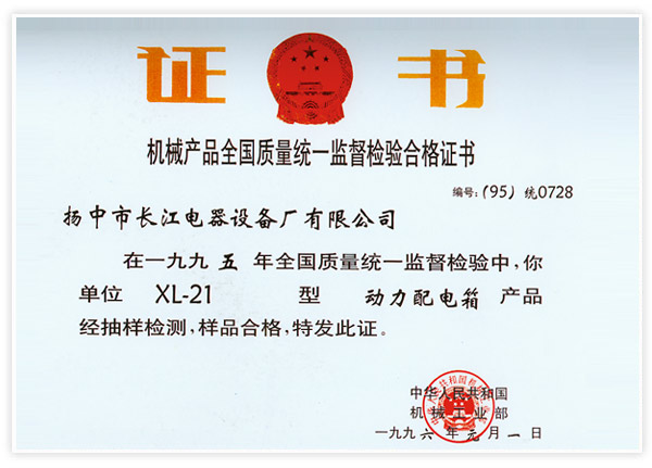 机械产品全国质量统一监督检验合格证书